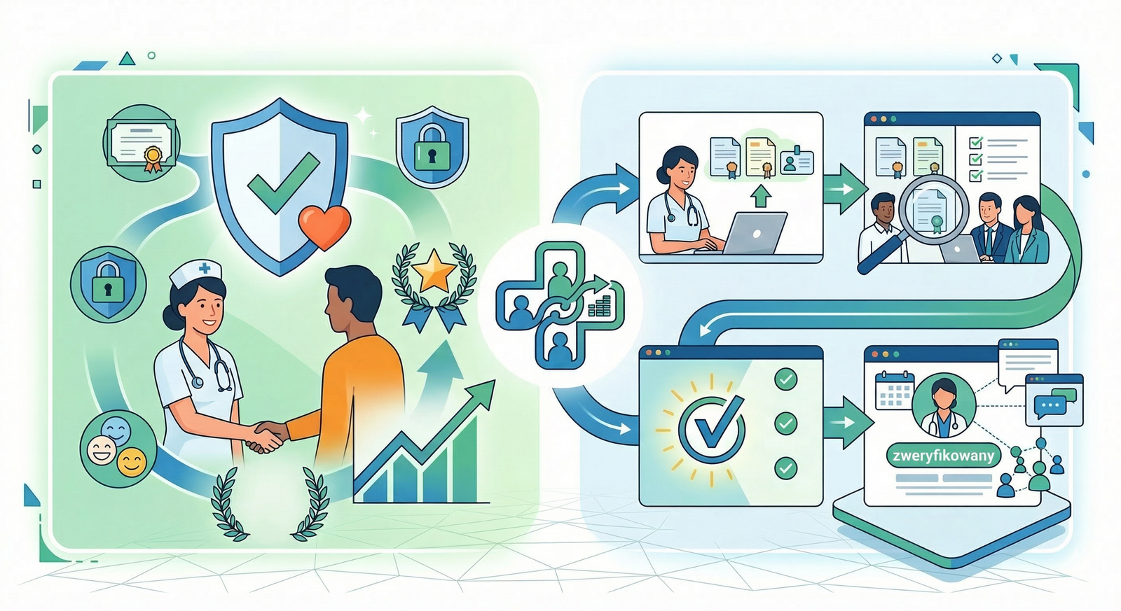 Pomaga pacjentom uzyskać szybki dostęp do usług zdrowotnych, a specjalistom — rozwijać karierę na własnych warunkach.